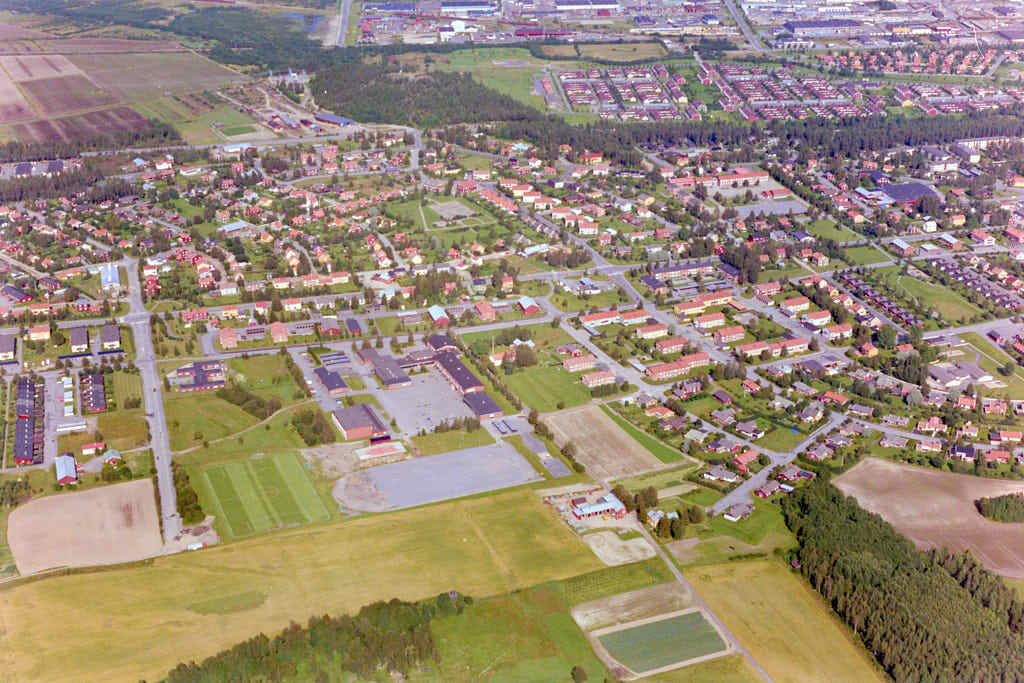 En flygbild som visar Grubbe och Grisbacka i Umeå år 1985.