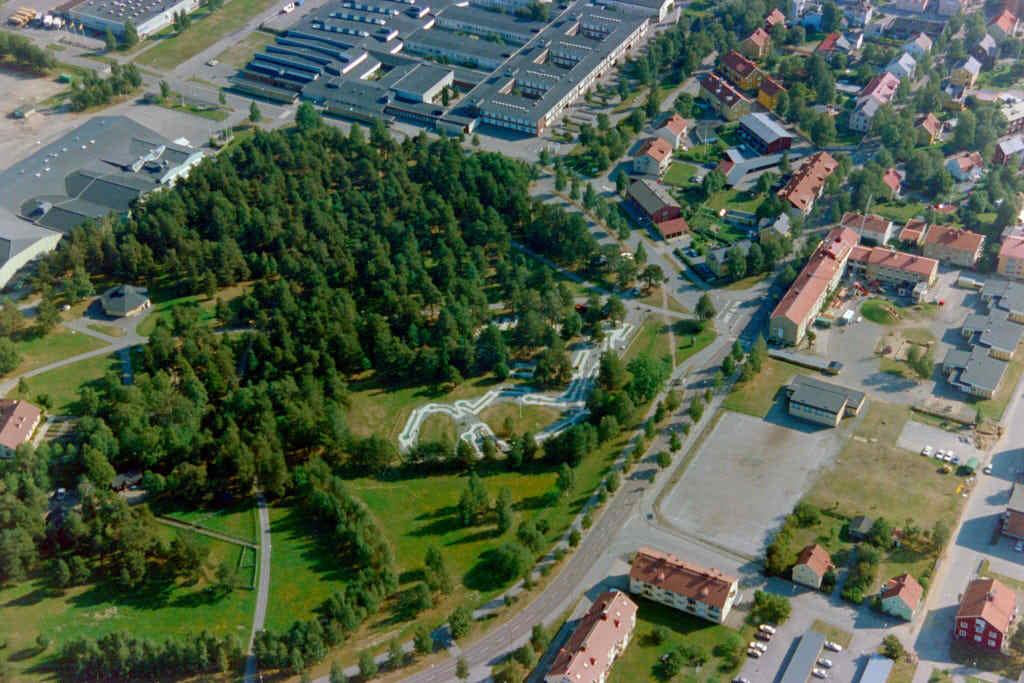 Väst på stan i Umeå från ovan – Flygbild från 1999